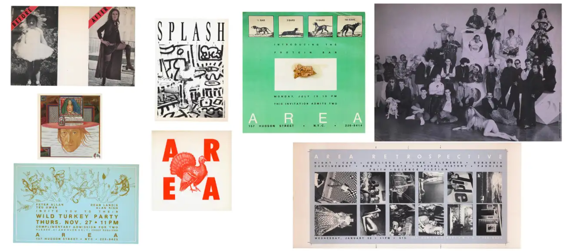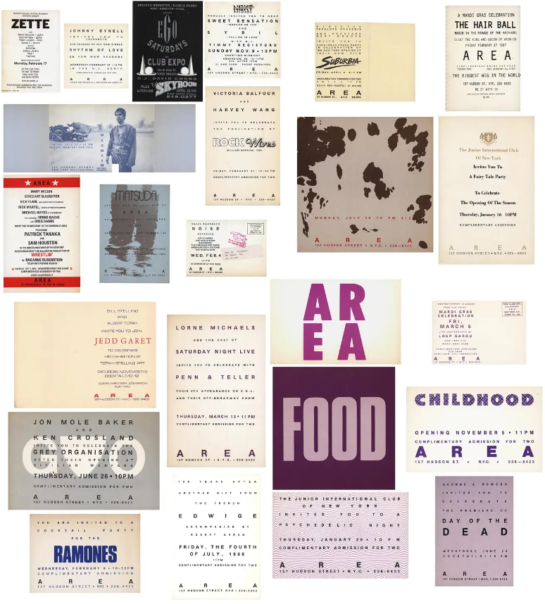Area opened in 1983 at 157 Hudson Street, occupying a 13,000-square-foot warehouse in Tribeca. Over its short lifespan, the club became central to New York’s downtown cultural scene, drawing artists, musicians, designers, and figures such as Andy Warhol, Jean-Michel Basquiat, Francesco Clemente, Julian Schnabel, Madonna, and JFK Jr.