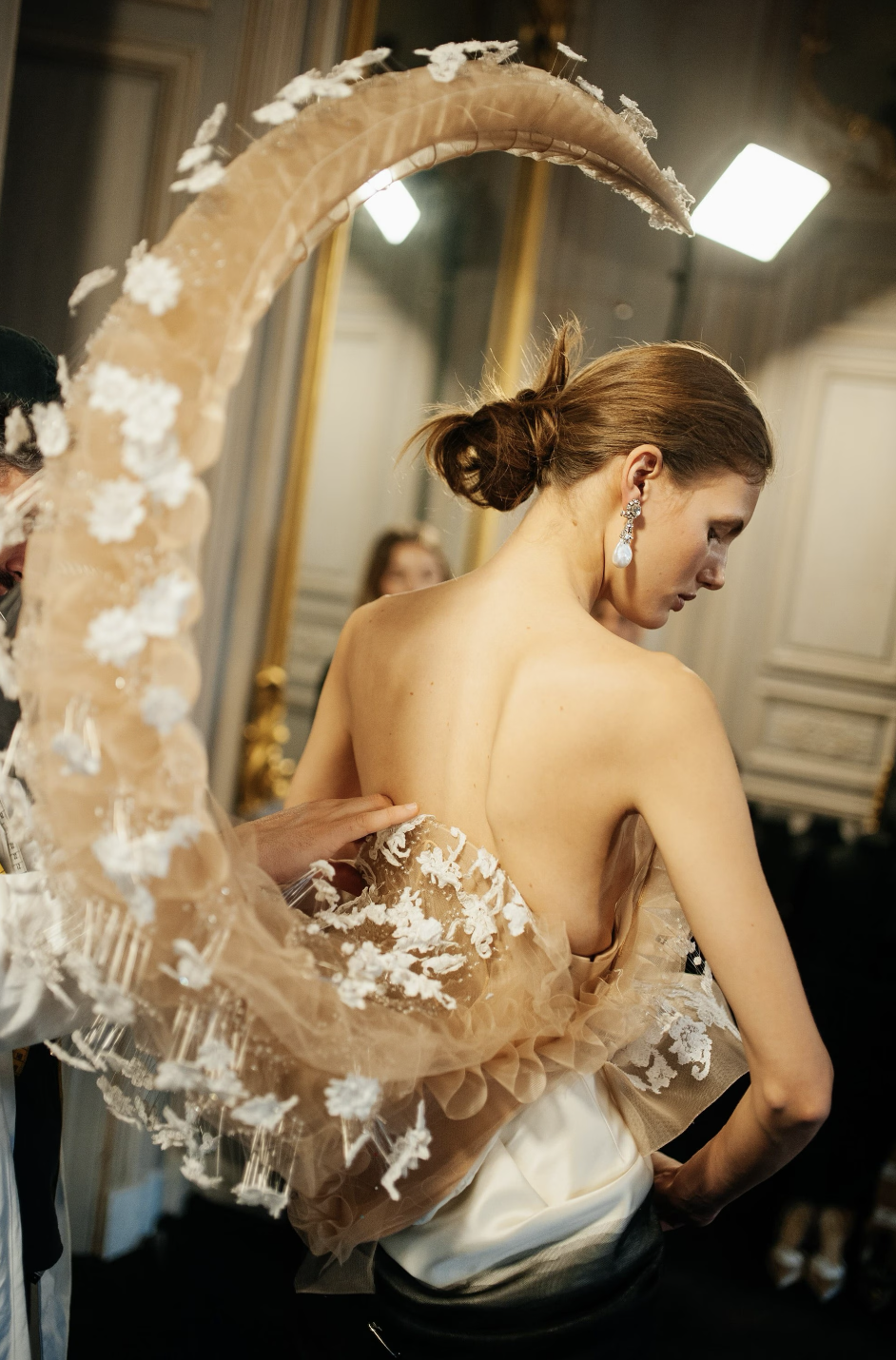 Roseberry is closest to Elsa Schiaparelli here in attitude rather than reference. Schiaparelli understood that elegance could be confrontational, that fashion could unsettle as much as it seduced. Her work was never about harmony, but about tension between beauty and shock, wit and violence. There is something defensive and instinctual in the work, like a body responding to threat. It expands. It exaggerates. It refuses to shrink. Blowfish-like. Self-preservation through visibility. Taking up space as a strategy.