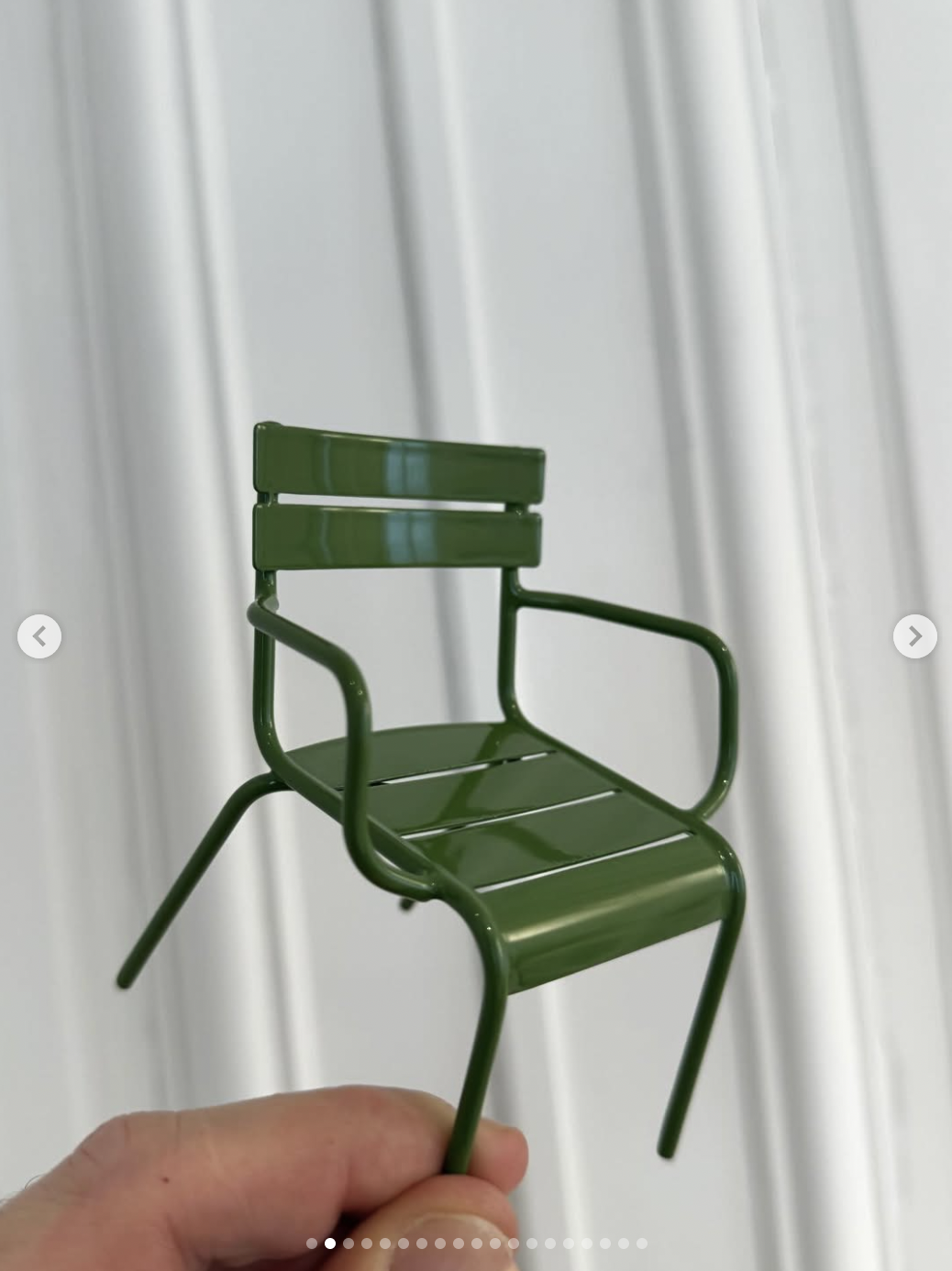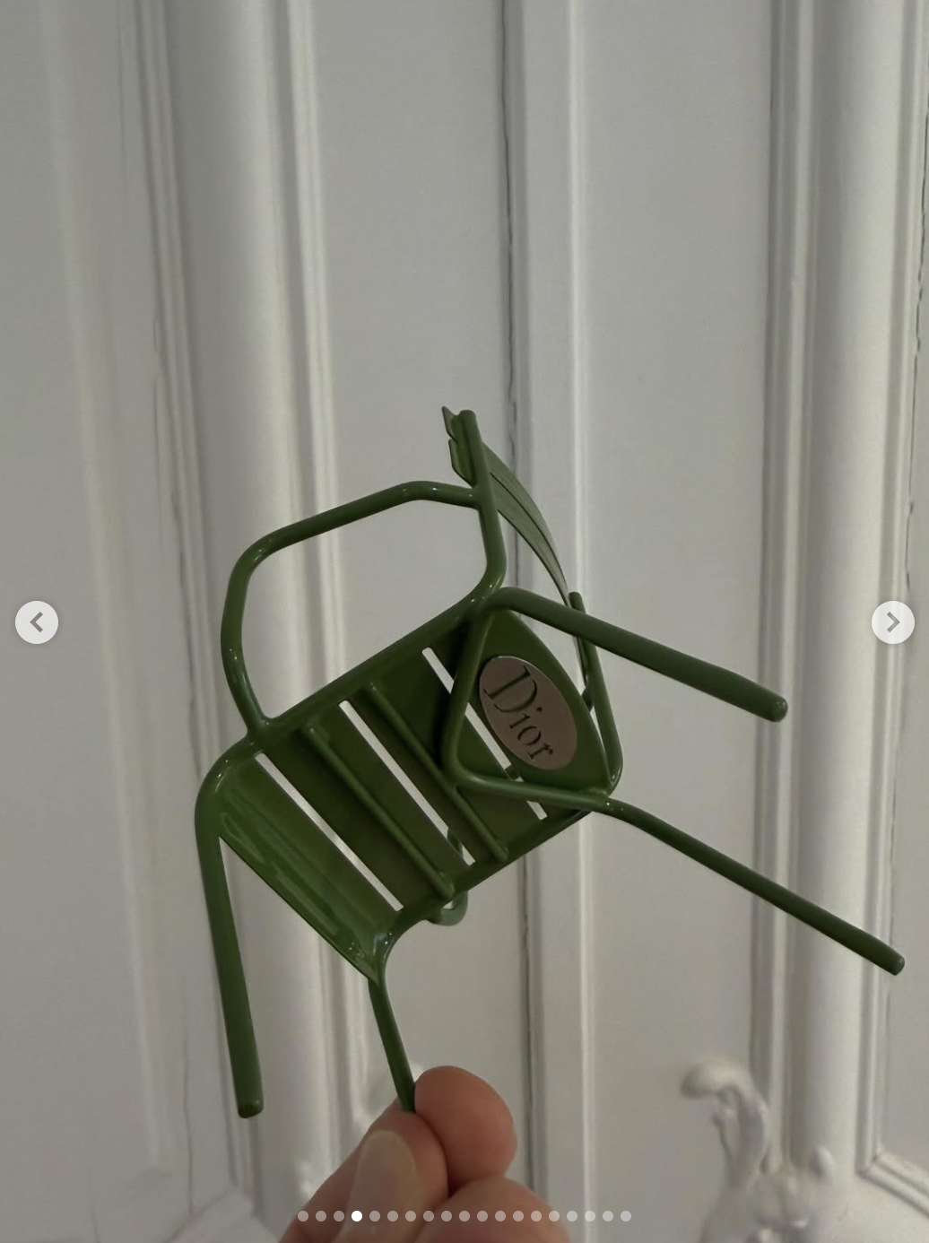 Seat's Taken. Dior's invite for its AW25 Tuileries show arrived as a pair of miniature park chairs. The iconic green ones, lacquered to a squeak, barely bigger than a thumb. Nestled in a grey presentation box with a monogrammed card, offensively charming.